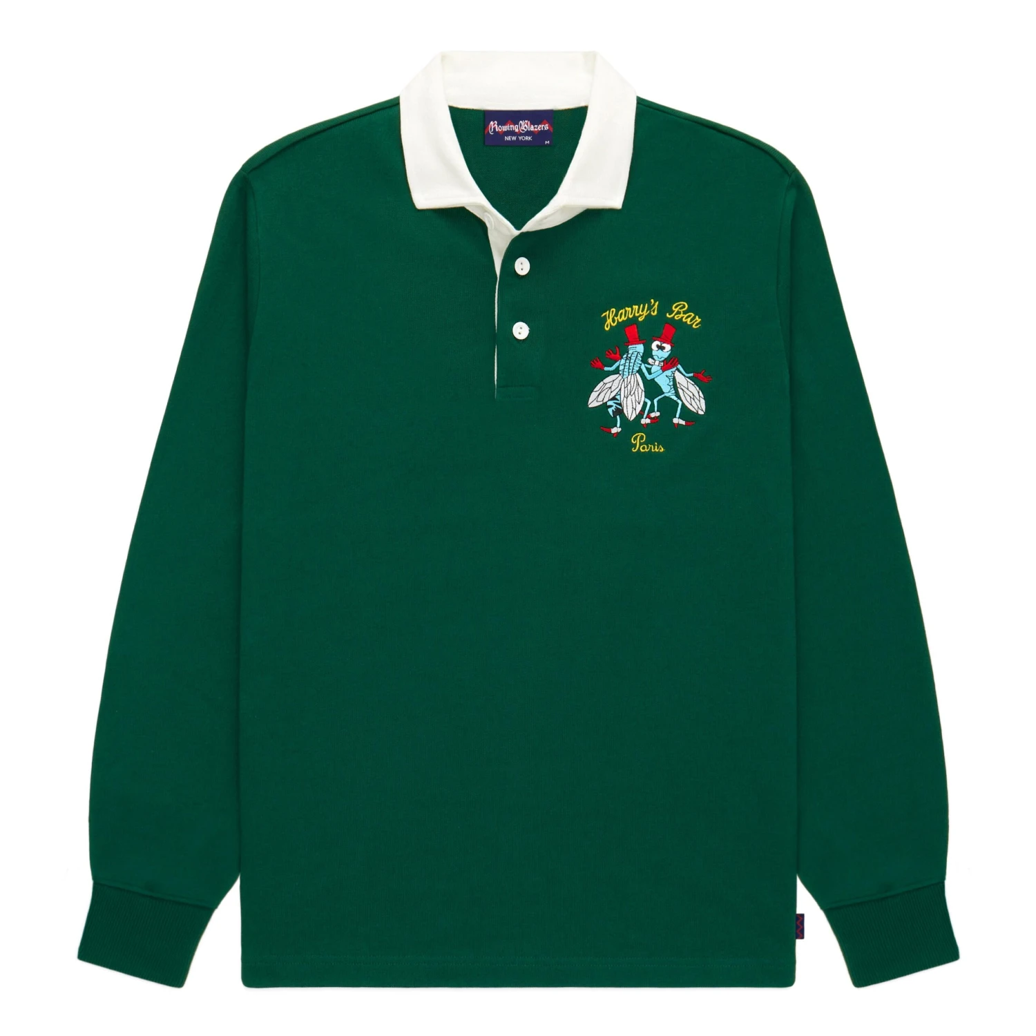 Super heavyweight (400g/14oz) rugby jersey featuring an embroidered Harry’s New York Bar motif on the left chest. Knit in the traditional 12-gauge style on vintage looms in Portugal.